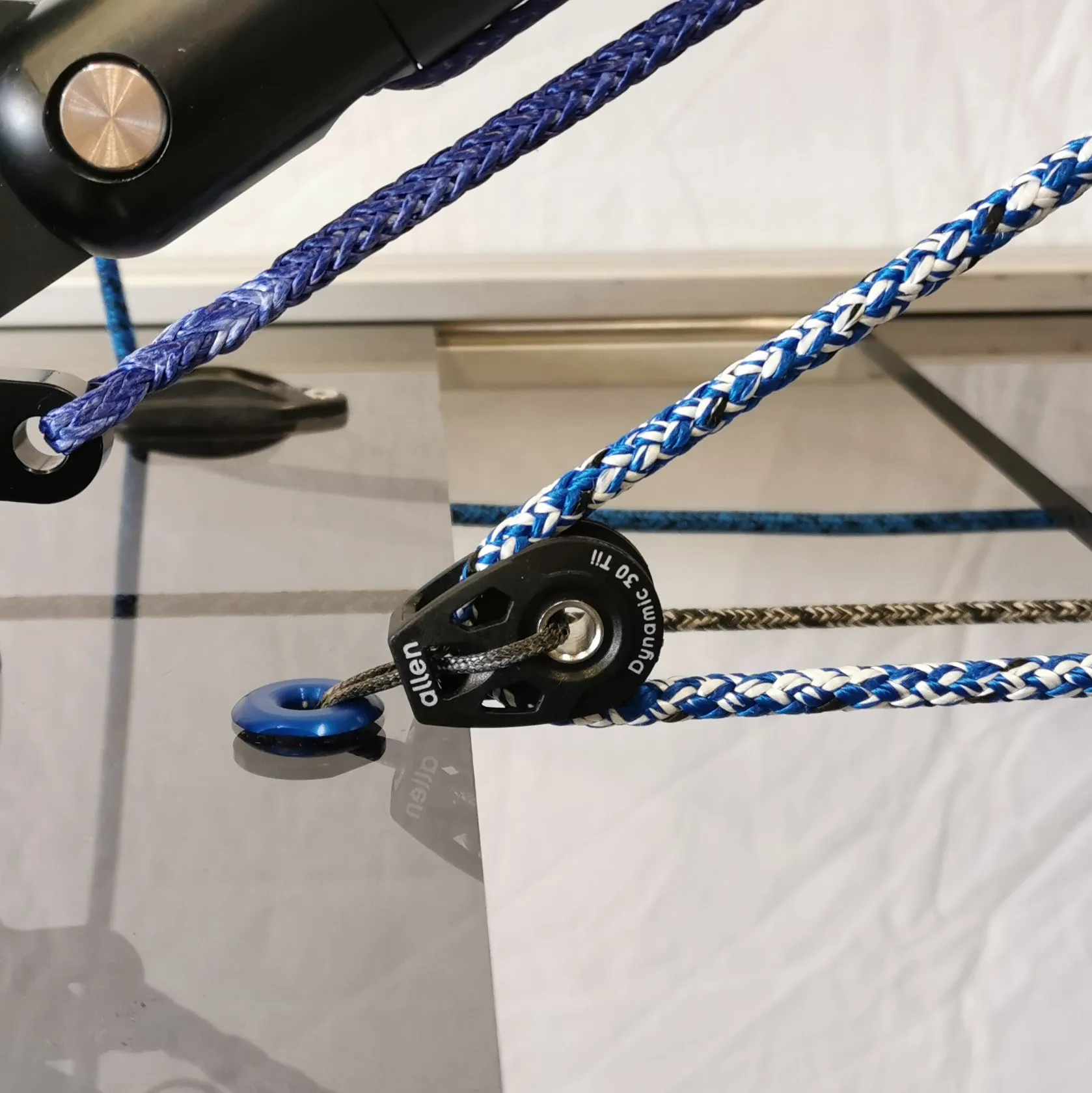 With the Pad-Tii Allen have incorporated an ingenious removable attachment pin to allow the user to replace the tii on rope as it wears. Simply unscrew the upper insert, push down on the tii on rope and remove the stainless steel crossbar. Install your replacement tii on rope by pushing through the hole in the centre of the upper insert, slide the pin into place retaining the tii on rope and screw the upper insert back into the deck.