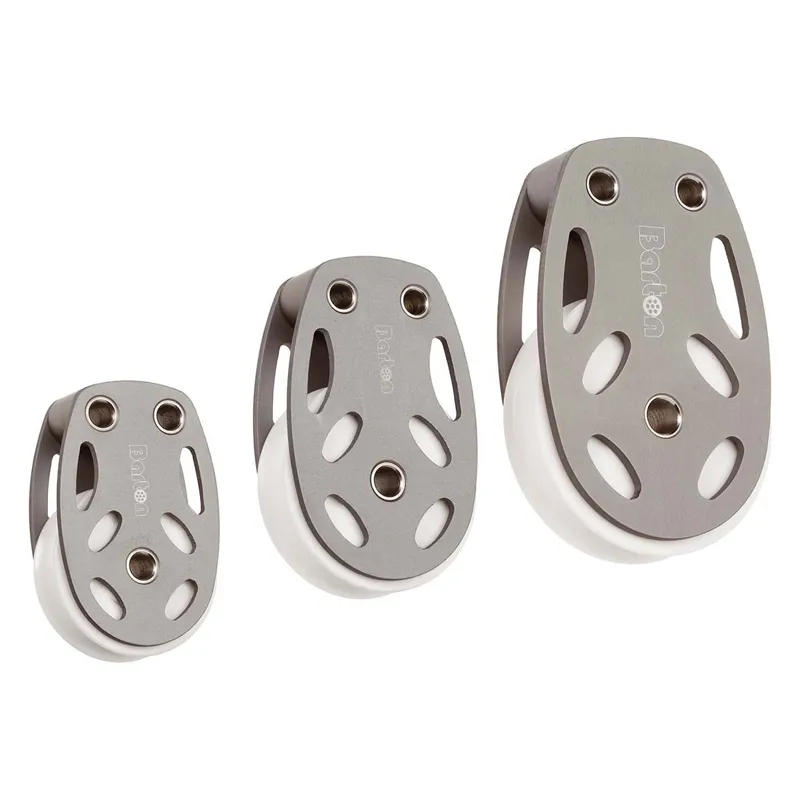 Grey finish. Precision turned Ertalyte sheaves run on large diameter centre bearing to give low friction performance under high loads.