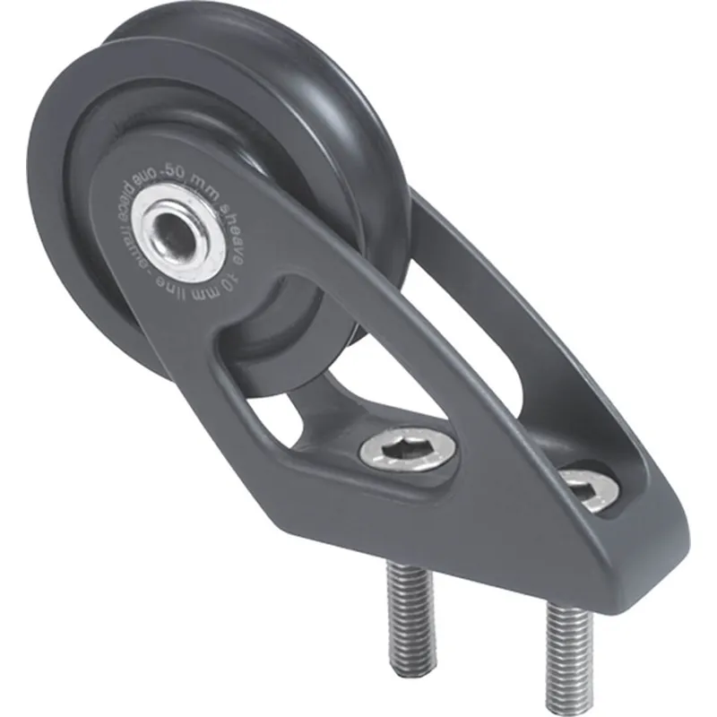 A complete range from 50 to 140 mm sheaves in single, double, triple, fiddle, and deck versions, for webbing or shackle connection. Sizes are based on the range of HR shackles available and on their safe working load (SWL). The HR swivel head. Made in high resistance stainless steel, with three positions: swivelling head, longitudinal lock and transversal lock. HR shackles included. The one-piece-frame. The one-piece aluminium extruded body is the strongest and lightest solution, no assembling pin rivets or screws and nuts. CNC machined - polished - hard black anodized and teflon coated. The composite fibre sheave. The resin (aluminium on larger mod) sheave runs on the main Composite Fibre bearing and on a ground stainless steel hub: low friction highloads - no lubricant required. The self-captive side ball bearing reduces the friction and makes disassembling, cleaning and maintenance very easy. Sheaves are supplied with the s.steel hub, they are available separately.