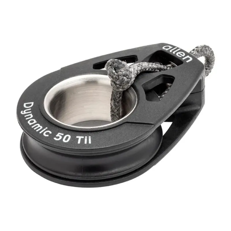 Allen 50mm Dynamic Blocks utilise our patented Dynamic bearing technology, the high quality stainless steel ball bearings running on stainless steel rails provides unsurpassed performance under load. The large central hole for tie-on becket requirements gives this block range a distinctive style and significant weight reduction and is available with a variety of accessories. Suitable for numerous demanding applications on boats, including Catamarans and Keelboats, the multi blocks provides great free running performance under load.