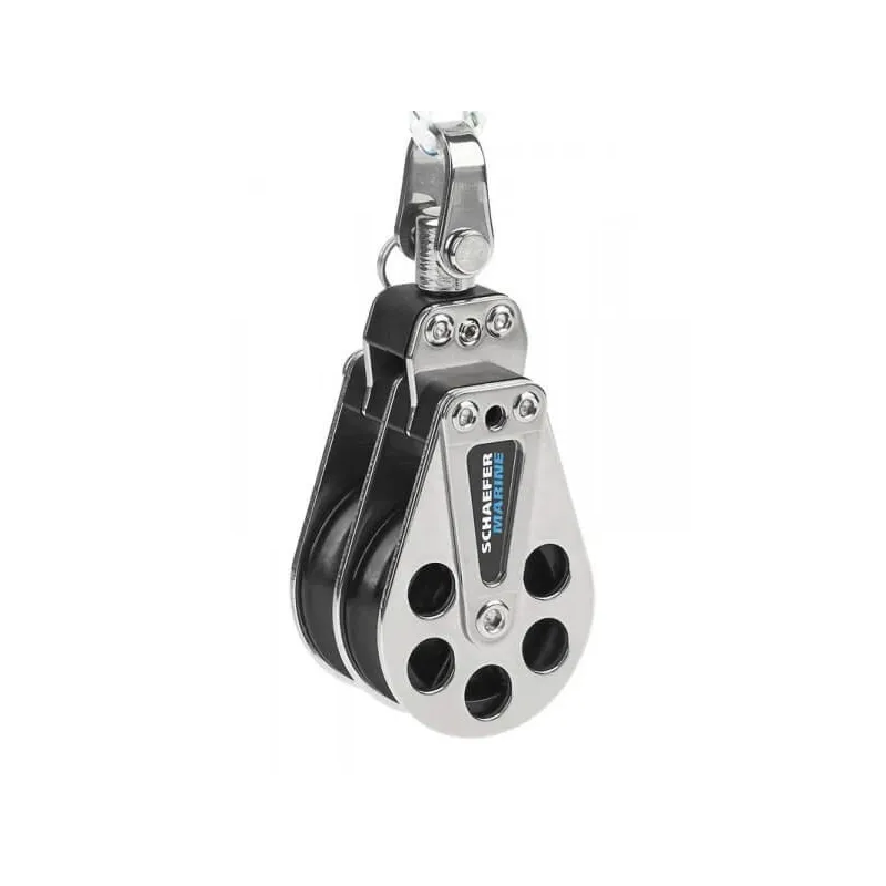 Works with 505-35, 505-75, 505-76 for a 4:1 purchase. Delrin(tm) sheaves ensure smooth operation with high safe working load. Swivel head may be locked in place to avoid twist.