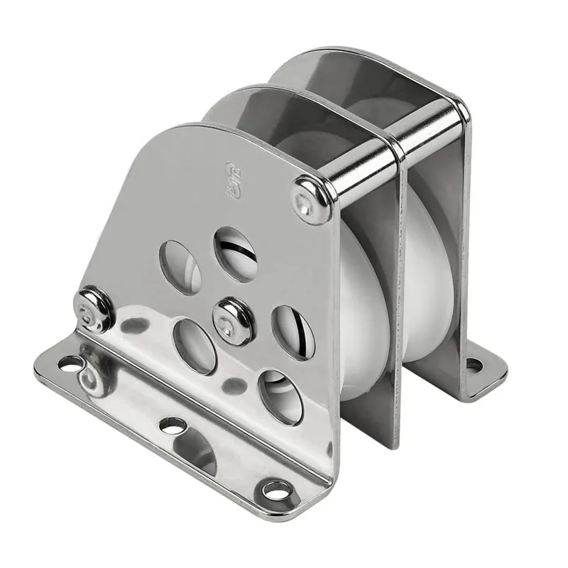 Stainless Steel cage and base provide a solid platform for clean leads. Delrin(tm) ball bearing sheaves ensure low-friction and high safe working loads.