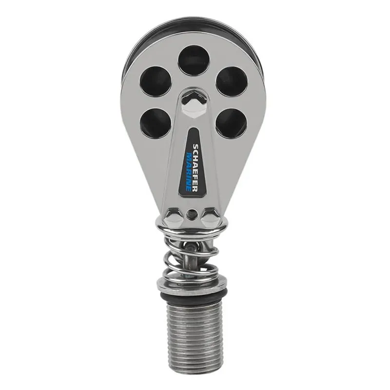 Stainless Steel cheeks, Delrin™ sheave runs on Nomex/Teflon™ bearing for low-friction yet high strength operation. Spring mounted, on 1inch -12 threaded stainless steel plug.