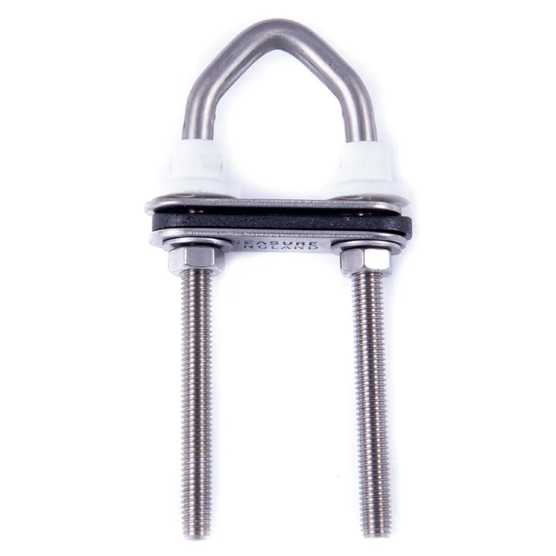Metric Stainless steel U-bolts with plastic nuts on upper (low stress) side.