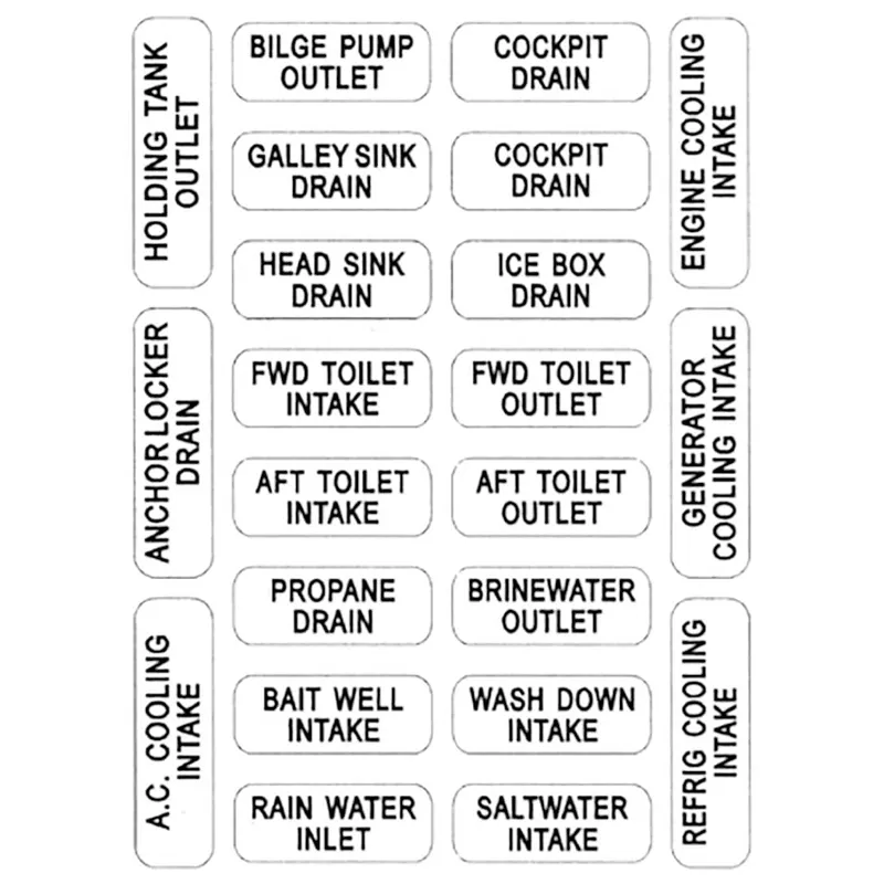 All labels are self-adhesive, vinyl plastic, waterproof and won't fade. Perfect for flat, round or irregular surfaces of metal, fibreglass or paint.