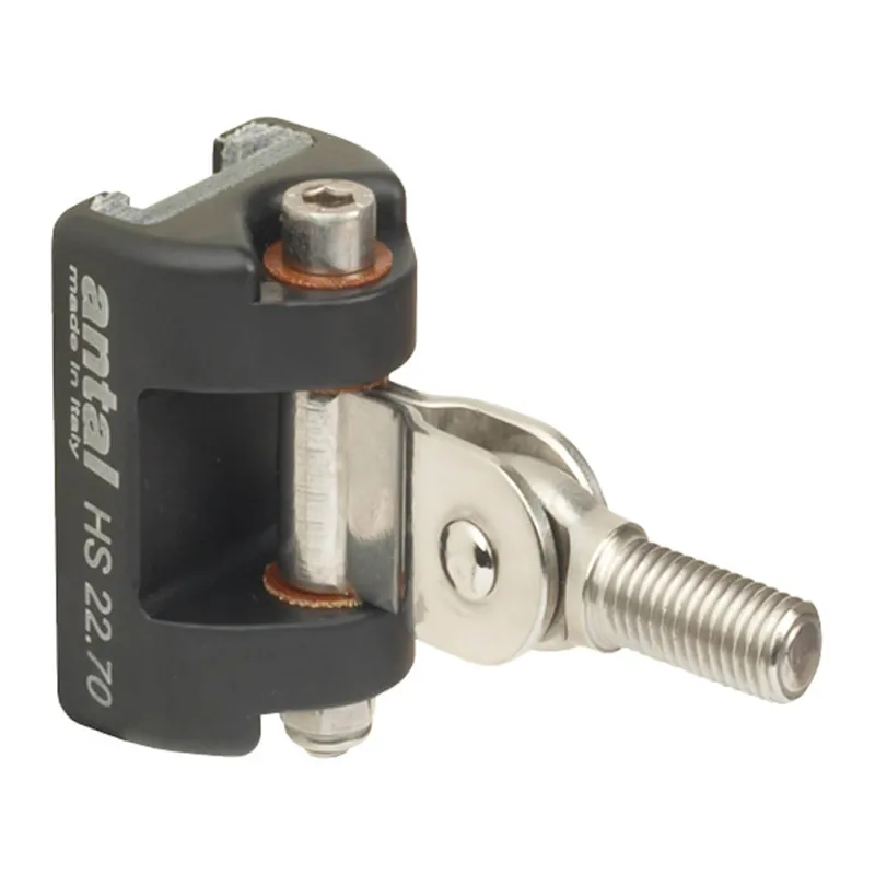 Simple slider. This slider takes an intermediate position between two sliders with joint. It is sewed to the sail with a webbing. It usually has small dimensions as it is the slider with the lowest load in the system. Slider with joint. Its function is to be connected to a batten receptacle with a threaded pin. It is usually bigger than the simple slider because battens stress sliders more than webbings. Antal designs symmetric batten receptacles mounted inside the batten pocket. Headboard slider. The slider which takes up the highest loads is realized double, triple or quadruple. With higher loads the headboard slider will need a higher number of sliders, or sliders with greater dimensions. Large mainsails or sails with wide roach require stronger headboard sliders. Headboard sliders are provided with a pivoting bracket for the coupling of the headboard. Also, Antal makes Fast release push pins available for a quick connection between sail and slider. Double slider. Where reefing points are and in correspondence of the clew angle, one may want to use a double slider with a double webbing connection to the sail. This because the outhaul and reef lines load up the tack angle at the mast.