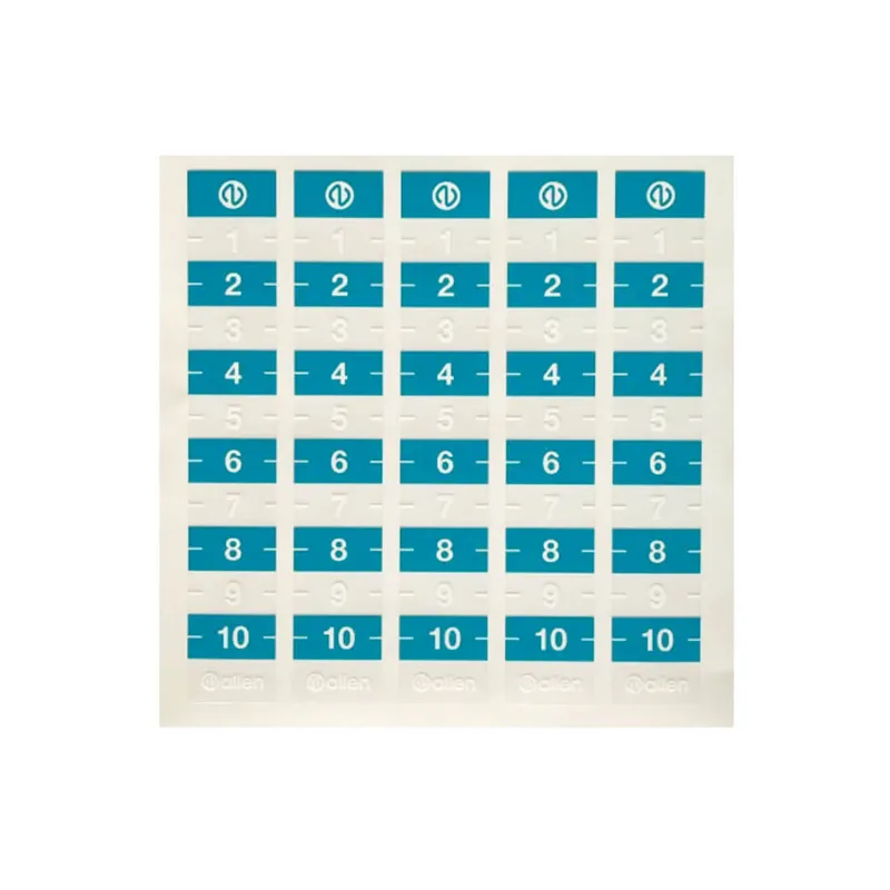 These stickers make calibrating sail or rig settings super easy with clear and easy to read numbers ranging from 1 to 10. Get repeat settings to make tuning your boat more effective. Teal and clear squares with white numbers and measurement lines.